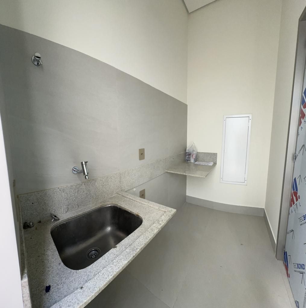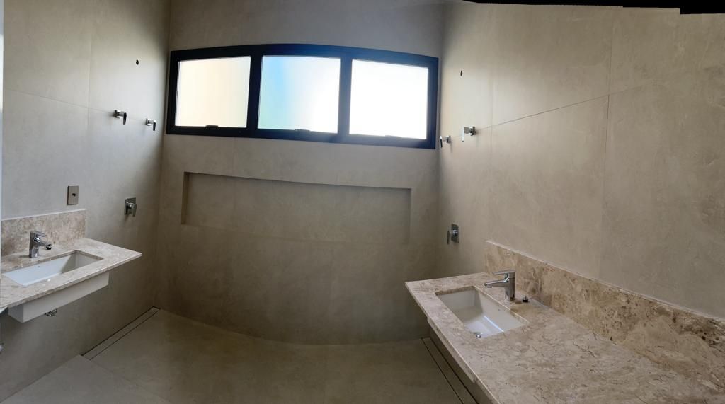 Os ambientes são integrados e elegantes, com salas de estar, jantar e TV em conceito aberto e pé-direito duplo, além de cozinha, despensa e área de serviço.