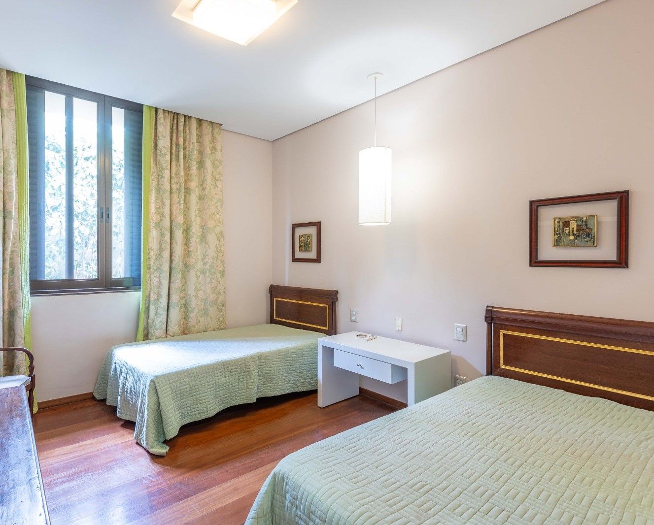 O imóvel conta com 3 suítes espaçosas, sendo duas com closet, além de sala em dois ambientes com pé-direito duplo, sala de TV, cozinha, varanda gourmet, área de serviço, despensa, e dependência completa para funcionária (quarto e banheiro).